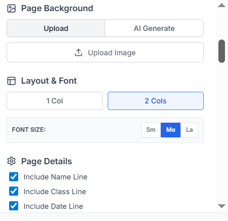 Teachers remain in control of the final worksheet and can easily edit text, regenerate questions, and customize visuals before exporting.