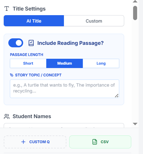 Creating high-quality reading worksheets that truly align to standards can take hours. Our AI Worksheet Generator helps teachers produce standards-aligned reading passages and questions in seconds, while still maintaining the flexibility and control teachers need in the classroom.