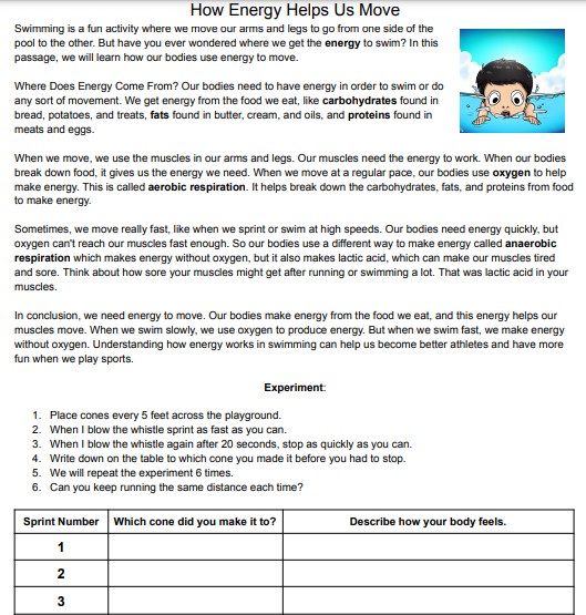 Engage your students with this interactive and informative lab. Designed for elementary students, this lab explores the topic of how our bodies use energy to move. Perfect for science lessons, this resource will help students understand the connection between energy and physical activity.