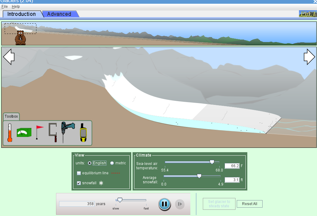 This is an interactive digital glacier lab that will help students understand what glaciers are, what some of the formations and deposits look like, and will have students explore how glaciers grow and shrink, and how scientists go about discovering glacial movement speeds over time as well as fi
