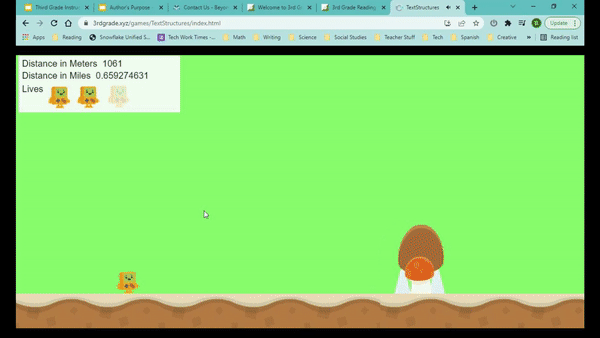 In this reading game, students will jump a character as it runs through an obstacle course. If the student misses a jump, a text structure reading question will appear. If the student answers the question correctly he/she will be able to continue. The question is missed, the cha