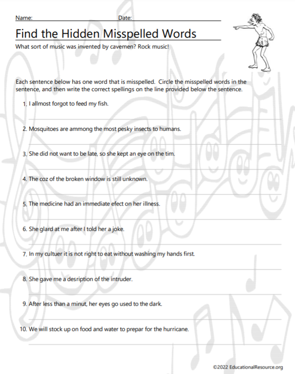 Find the Hidden Misspelled Words
