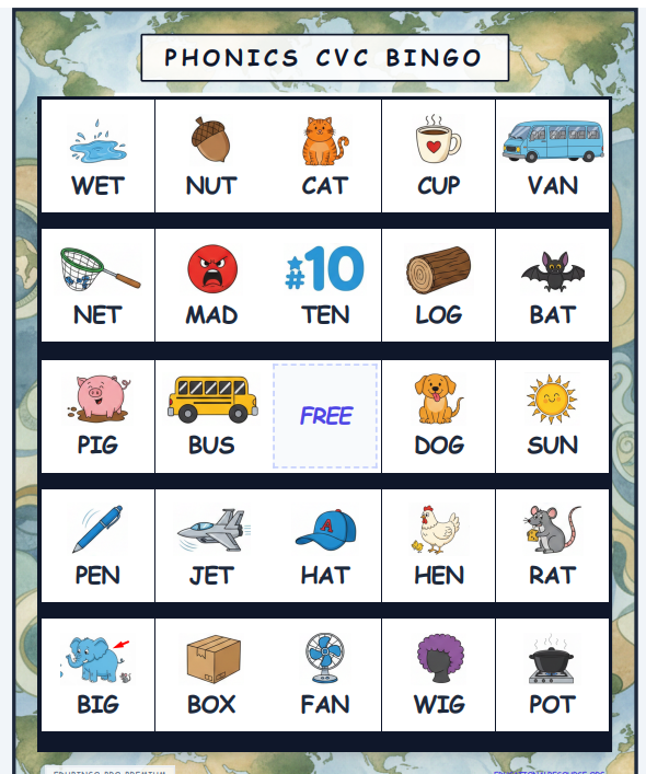 Make phonics practice fun and engaging with this Phonics CVC Bingo Classroom Set!