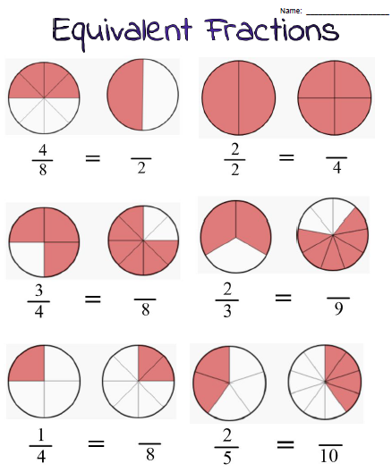 This 3rd-Grade equivalent fractions worksheet has 6 pies and 5 bars divided into fractions. Students will use those charts to find the equivalent fractions. There is a bonus question where students will create their own equivalent fraction.