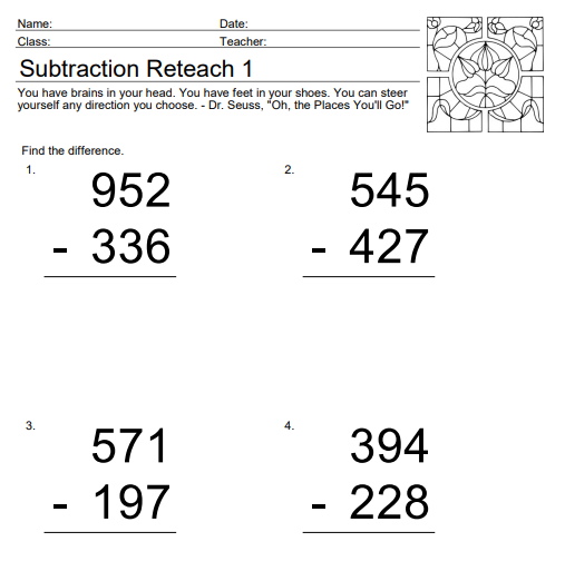 Use this elementary math worksheet to check for understanding or reteach the triple digit subtraction with borrowing numbers.